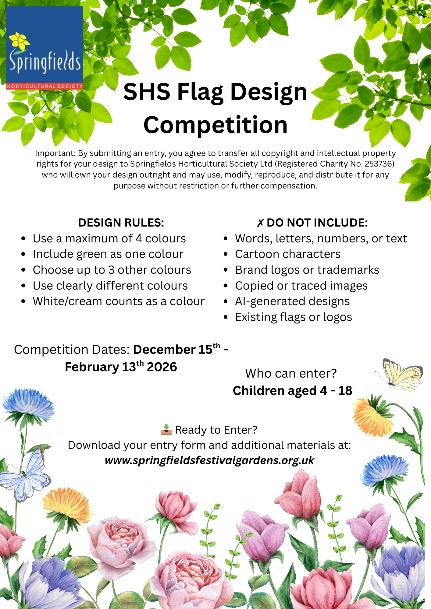 For more details: Design A Flag Competition 2026! – Springfields Festival Gardens